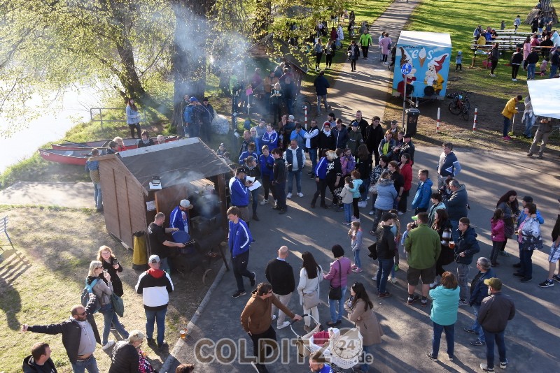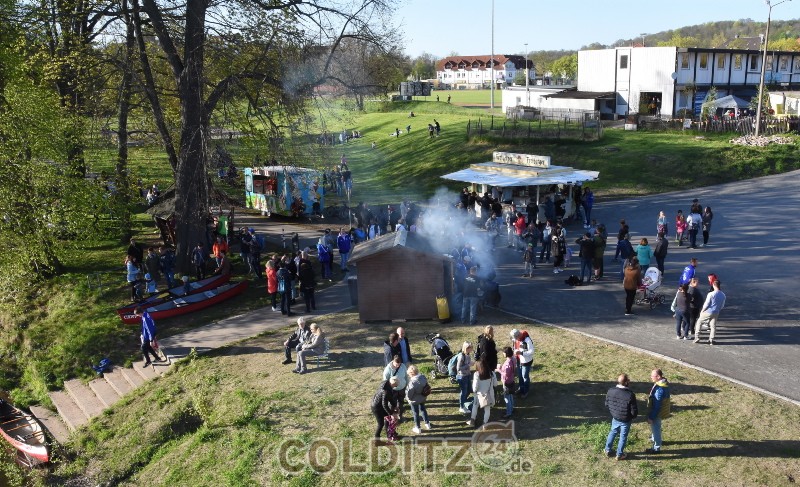Während anderswo in die Walpurgisnacht hineingefeiert wurde, lockte der Colditzer Kanu- und Sportverein e.V. die Gäste an die Zwickauer Mulde. In diesem Jahr konnten sie die Birkenfest- regatta nun zum 20. Mal ausrichten. Es ist kein Kampf um eine Platz auf dem Siegerpodest zu bekommen, sondern eine Gelegenheit, einfach die Seele mal mit ein paar vergnüglichen Stunden baumeln zu lassen. Das Wetter hatte dem Ganzen keinen Strich durch die Rechnung gemacht, sondern verwöhnte die Besucher mit strahlendem Sonnenschein. Wer Lust hatte, konnte sich unter Aufsicht der Klub- Freunde eines der bereit- stehenden Kanus leihen und auf der Mulde oberhalb des Wehres ohne starke Strömung ein paar Runden drehen. Die Kids begeisterte der Seifenblasenartist Jörg Müller. Je größer, je beliebter waren die tollen Blasen bei den Mädchen und Jungs. Die ältere Generation hatte eher auf den Bänken Platz genommen, lauschten den beschwinglichen Klängen der Grimmaer Schalmeienkapelle; genossen die entspannende Frühlingszeit bei einem Gläschen Bier oder einem Tässchen Kaffee.