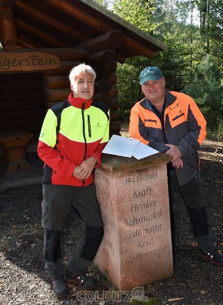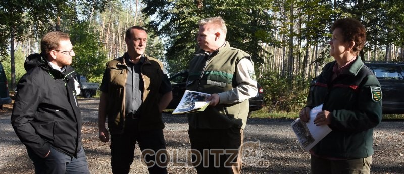 Heute punkt Neun traf man sich am Jägerstein im Colditzer Wald. Es war keine Besprechung, sondern ein kleiner, feierlicher Anlass, 2 Forstmitarbeitern für ihre 40 Jahre Dienst am Wald zu danken. Forstbezirksleiter Andreas Padberg gratulierte Mario Paul und Ulrich Zillmann für ihre so langjährige Tätigkeit, Revierförsterin Barbara Kotschmar und der Lehrausbilder Andreas Schwientek schlossen sich an. Beide erhielten eine Urkunde, verbunden mit einem kleinen Obolus und einem Tag “Sonderurlaub”. Ihr Dienstlaufbahn ist aber nicht identisch; A. Padberg bat beide, `mal einen kurzen Abriss ihrer Tätigkeit zu geben. Ulrich Zillmann erzählte, dass sein Weg nicht nur auf Colditz beschränkt war. Lehre und immer weitere Spezialausbildungen rissen nicht ab. Das betraf auch die Orte, wo er noch weitere Schulen besuchte, bis Flöha. Fachlich für Langholztransporte bis zur Waldpädagogik. Die Verbundenheit zum Wald ist aber bis heute haften geblieben. Nicht viel anders sind die Jahre bei Mario Paul abgelaufen. Er verblieb zwar die meiste Zeit hier im Colditzer und Glastener Wald, doch ruhig und glatt ist das Leben eben nicht. Seinen beruflichen Ehrgeiz hat er bis heute nicht verloren; hat auch die Ausbildung zum Waldpädagogen abgeschlossen und sich mehr in die Jagd vertieft. Daher ist er nun als Jagddirektor in unserem Revier verantwortlich.Die Forstwirtschaft ist keine kurzlebige Geschichte, gibt FBL Padberg ganz klar zu verstehen. Mit der Industrie lässt sie sich keinesfalls vergleichen. Alles ist auf Langlebigkeit ausgelegt und die Natur geht ihren eigenen Weg. Mario Paul: ” Man ärgert sich gewaltig, was man in langjähriger Arbeit aufgebaut hat; ein Sturm und alles ist in Minuten kaputt”. So ist man sich einig – die Forstwirtschaft durchlebt unruhige Zeiten. Die entstandenen Schäden dauern Generationen, um sie wieder in Ordnung zu bringen. Andreas Padberg erinnert auch noch an die “Wendezeit”. “Da wurde massiv Personal abgebaut, fast auf die Hälfte reduziert. Man könne es ja durch externe Firmen kompensieren. Die Frage stand damals im Raum: wie geht´s weiter? Heute spüren wir – es fehlt der Nachwuchs. Ein entstandenes Loch lässt sich aber nicht so einfach stopfen: man braucht ständig Nachwuchs der unterschiedlichsten Altersklassen. In unserer Arbeit ist es auch ganz wichtig, dass man gemachte Erfahrungen den Jüngeren weitergibt. Wir haben jetzt zwar reichlich Bewerbungen für die Lehrstellen, aber das dauert seine Zeit, bis sie selbstständig einsatzfähig sind. Ein Blick zurück hat eher etwas mit angestrebter Nachhaltigkeit zu tun.” Dass die Politik diese Angelegenheit völlig falsch einstuft, ärgert ihn. Die Förster sind selbst an den Sturmschäden schuld. Dafür hat er kein Verständnis; “Leipzig und Colditz sind kein Vergleich; sie sollten ruhig mal die 35 km nach Colditz fahren, um den Schaden sich anzuschauen.” RF Barbara Kotschmar sprach auch von einer völligen Veränderung des Verhaltens unserer Bürger. “Früher war die Möbelproduktion auf Nachhaltigkeit ausgelegt; eine Küche oder einen Schlafzimmer- schrank kaufte man einmal im Leben, Heute muss es mehrmals getauscht werden, weil es im Moment nicht mehr mode ist. Die Möbelindustrie braucht dafür massiv Holz, das Alte wird dann einfach entsorgt.”