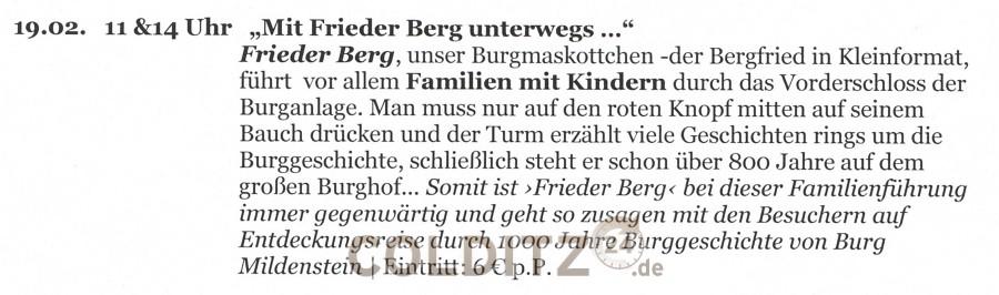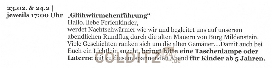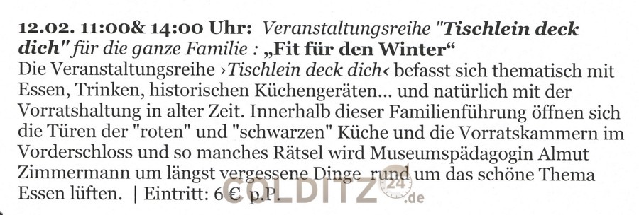 Am kommenden Wochenende beginnen die Winterferien an Sachsens Schulen. Damit es zu Hause nicht zu langweilig wird, bietet das Team von Leisnigs Burg Mildenstein eine Reihe von Veranstaltungen für alle Altersgruppen an.