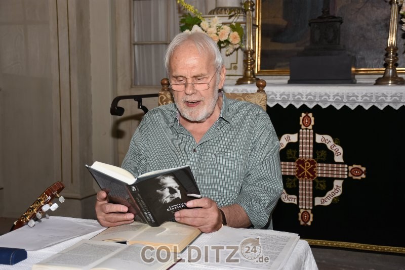 Der Freundeskreis Schlösserland bemüht sich mit hohem Engagement, bei der Erhaltung dieser kulturgeschichtlichen Stätten Sachsens behilflich zu sein. Seit gerade einem Jahr ist der weltbekannte Sänger Gunther Emmerlich Ehrenmitglied dieses Vereins; dahinter stecken keinerlei materielle Interessen. Eine der Vereinsleitungsmitglieder, Frau Dr. Romy Petrick, hat Gunther Emmerlich dazu bewegt, am heutigen Tag in dieser Schlosskirche ein Benefizkonzert zu geben und ist auf offene Ohren gestoßen. “Der Erlös soll ausschließlich der noch fehlenden Orgel zugute kommen”, so Frau Dr. Petrick. “10.000 Euro haben wir an Spenden und Patenbriefen für die Orgelpfeifen schon zusammen. Doch das reicht bei Weitem noch nicht, um den Orgelbau in Auftrag geben zu können.” Mit einem Mix aus Vorlesung und Musikstücken wollte Gunther Emmerlich einen Beitrag leisten, dem Wiedereinbau eine Chance zu geben. “Er ist ein absoluter Verfechter der Erhaltung unserer Kultur und den herrlichen Bauten, mit denen sie seit Jahrhunderten eng verwurzelt ist. Dafür engagierte er sich mit viel Enthusiasmus”, so Frau Petrick. Von der Resonanz der Kirche war er schon während der ersten Probestücke hell begeistert; einfach fantastisch. Ein Mikrofon brauchte er wahrlich nicht, selbst vorgelesene Texte aus seinem Buch waren bestens zu verstehen. Der Klang seiner Gitarre harmonierte hervorragend zu seiner klaren, wohlklingenden Stimme. So konnten die Gäste einen wunderschönen Samstagabend genießen. Angereist waren sie sogar aus der Bautzener und Chemnitzer Region; aus Colditz selbst kamen leider die wenigsten Gäste. Zum Einklang gab es ein Gläschen Sekt, zum Ausklang einen kleinen Imbiss. Vielleicht bewegt es doch Diesen oder Jenen Colditzer, Pate einer der noch zu vergebenden Orgelpfeifen zu werden.
