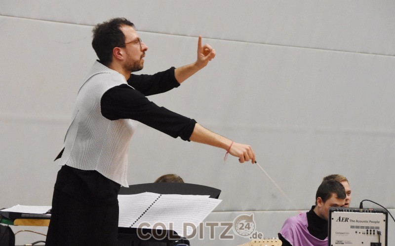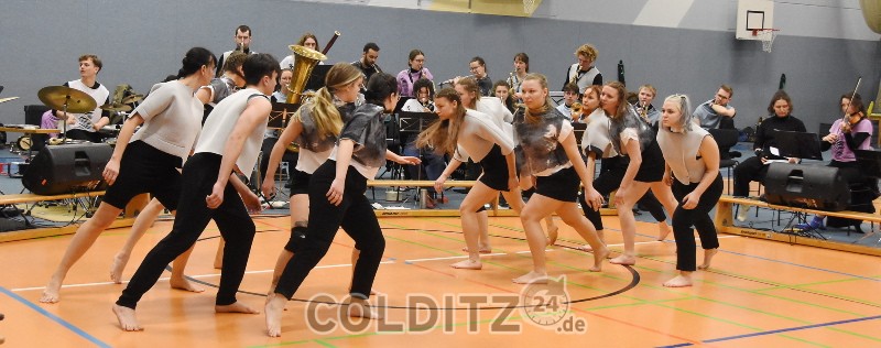 Die Generalprobe in der Colditzer Mehrzweckhalle verdient das Prädikat “einzigartig”. Diese gelungene Kombination aus einer außergewöhnlichen Musik, das noch aus der eigenen Feder des Dirigenten, und einem Super-Zusammenspiel mit ballettösem Tanz fällt gänzlich aus einem gewohnten Rahmen von Musik und Tanz. Selbst Ulrike Kirchberg, die Projektleiterin vom Sächsischen Musikrat, war von diesem Erscheinungsbild begeistert. Es war ein Genuss für Auge und Ohr – ein Augenblick, einen Moment abschalten zu können, von den unguten Nachrichten, die uns täglich erreichen.