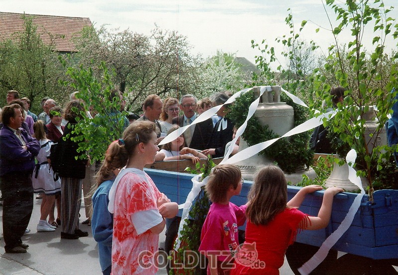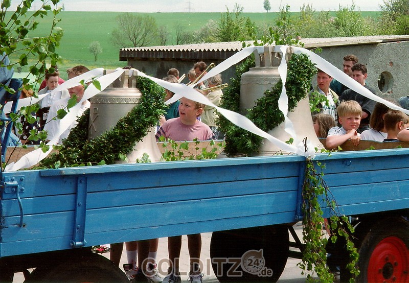 Am 7. Mai 1995 erlebte die Kirchgemeinde Zschirla mit ihren zugehörigen Orten aber ein unvergessliches Ereignis – zwei neue Glocken, bei deren Guss am 17. März einige Zschirlaer / Kaltenborner zugegen waren, wurden genau an der Ortsgrenze Katlenborn – Zschirla auf einen Pferdewagen geladen. Toll geschmückt und von vielen alten und jungen Gästen, nahm das Gespann seine Fahrt Richtung Kirche auf. Dort wurden sie vom Wagen in den Altarraum der Kirche verbracht und in einem feierlichen Gottesdienst von Pfarrer Wolfgang Engewald gesegnet. Es wurde zu einem unvergesslichen Dorffest. Später mussten die beiden neuen Glocken mit viel Aufwand in den Glockenturm gebracht werden. Pfingsten 1995 erklang erstmals das komplette Geläut – weithin unüberhörbar.