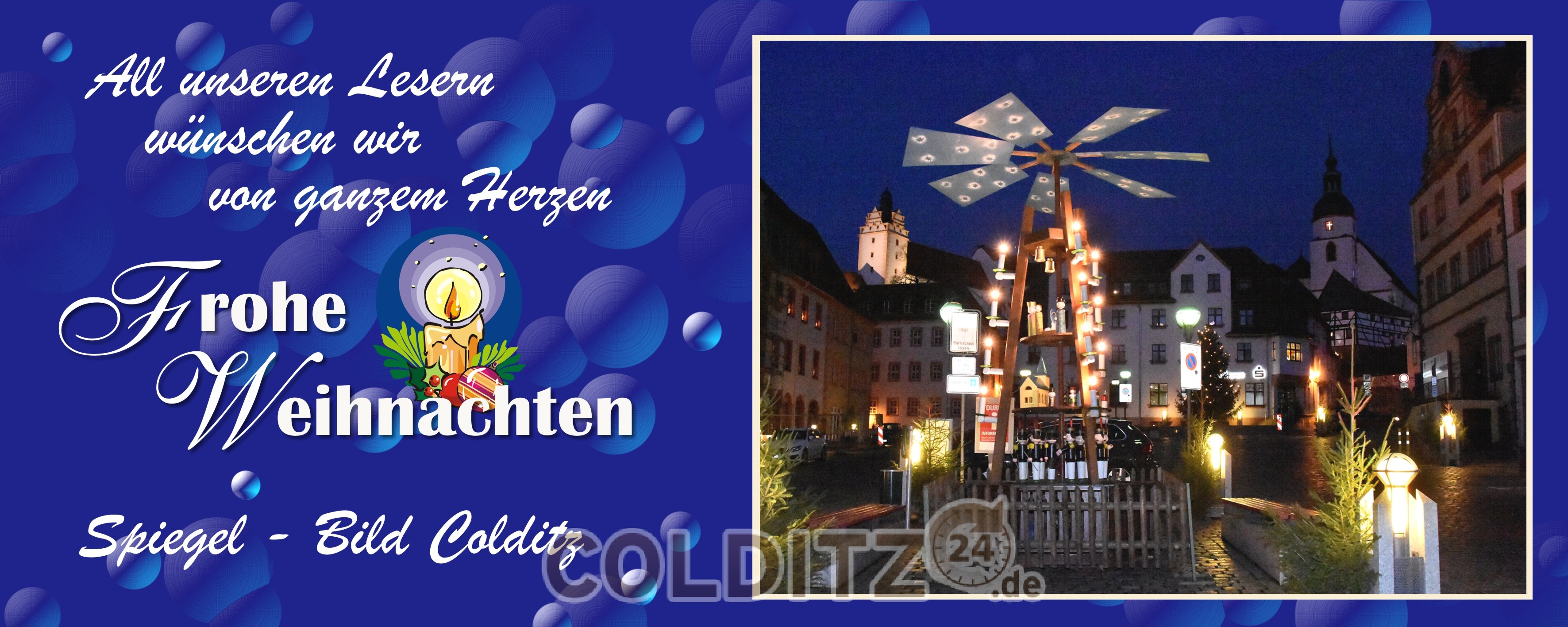 Das Weihnachtsfest naht; bald werden die Familien um den festlich geschmückten Tannenbaum beieinander sitzen. All unseren treuen Usern und Lesern in nah und fern wünschen wir ein friedliches Weihnachtsfest in trauter Runde und ein paar besinnliche Stunden. Auch wenn der zum winterlichen Fest gewohnte Schnee in diesem Jahr fehlen wird, genießen Sie trotzdem die letzten Tage des Jahres 2019. Auch im kommenden Jahr werden wir wieder für Sie da sein, um Sie über das Geschehen rund um Colditz so aktuell wie möglich zu informieren.